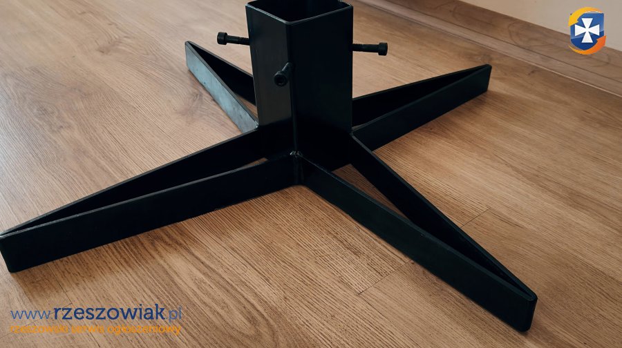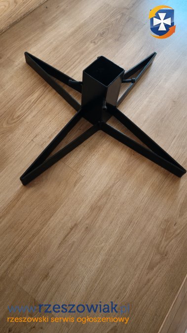 Nowy, czarny, metalowy stojak na choinkę.. Solidna konstrukcja zapewnia stabilne podparcie drzewka. Otwór pod montaż pnia wykonany z profila 80x80. Cztery solidnie śruby do zamontowania drzewca. Długość gwiazdy 65cm. Wysokość profila 20cm. Zapraszam do kontaktu