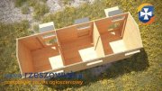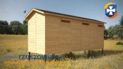 Wykonany jest z deski pióro wpust na podłogę, ściany i dach z zewnątrz o grubości 15mm. Od wewnątrz deski o grubości 15mm