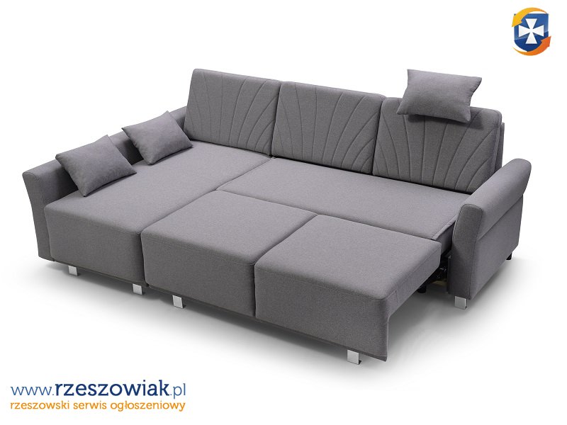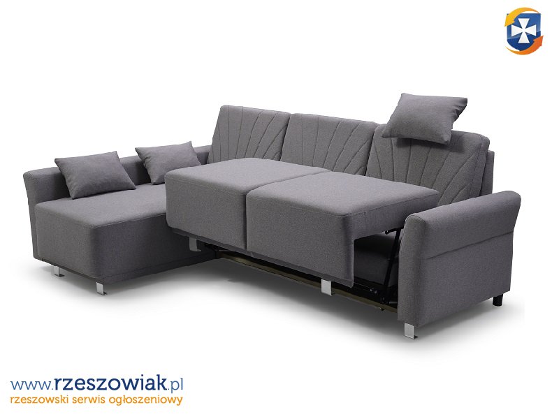 Nowy Narożnik Molly z funkcją spania oraz pojemnikiem na pościel. Rogówka wykonana na sprężynach co znacząco podnosi komfort użytkowania. W narożniku zastosowano automat wspomagający otwieranie typu PUMA.