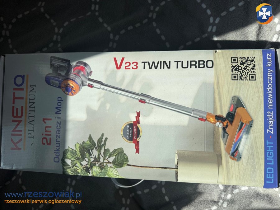 Na sprzedaż całkowicie nowy, nieużywany (nigdy nie wyjmowany z pudełka poza sprawdzeniem zawartości) odkurzacz bezprzewodowy Kinetiq Platinum V23 Twin Turbo 2in1 â odkurzacz + mop parowy w jednym!