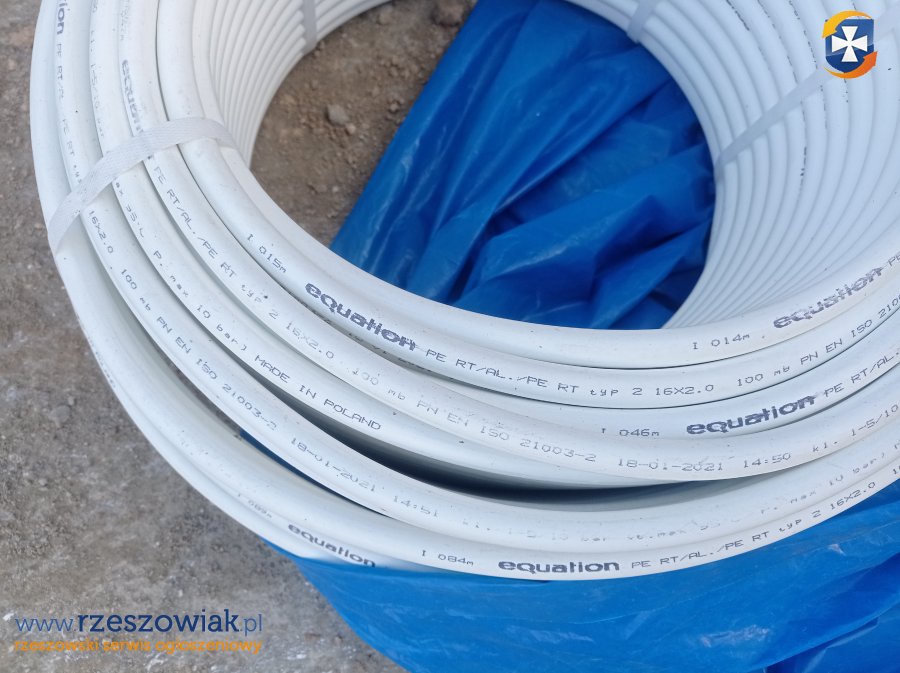 Nowy, PEX 16 mm o długości 2x100 m. Produkt został wyprodukowany w Polsce przez firmę Equation.