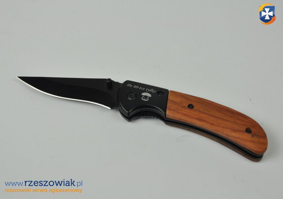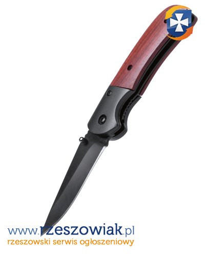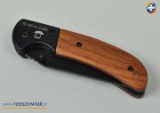 Nóż składany ze stali nierdzewnej z drewnianą rączką i zamkiem bezpieczeństwa z grawerem