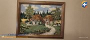 Obraz drewniana rama haftowany ręcznie - przedstawia piękną wieś i wokoło przyroda.Wymiary - 37 x 45 cm.stan bdb gotowy do zawieszenia.