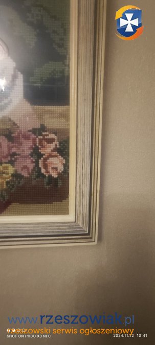 Obraz ręcznie haftowany gobelin -drewniana rama za specjalną do obrazów pleksa stan BDB gotowy do zawieszenia.przedstawia śliczną dziewczynę z kwiatami.Wysokość 48 x40 cm.