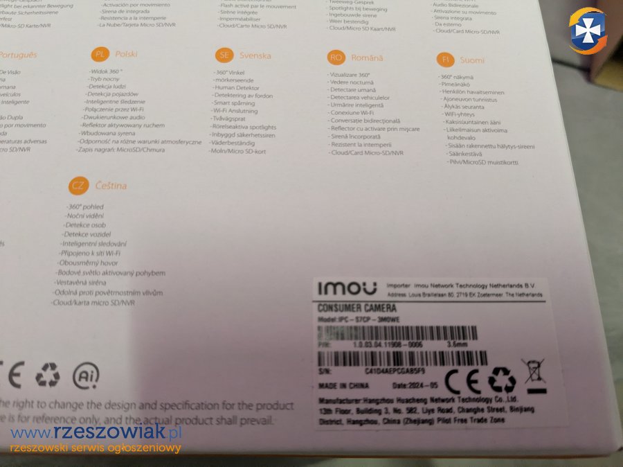 OBROTOWA KAMERA ZEWNĘTRZNA IP IMOU CRUISER 2C 3 MP 8x ZOOM + DETEKCJA OSÓB Certyfikaty zgodności CE