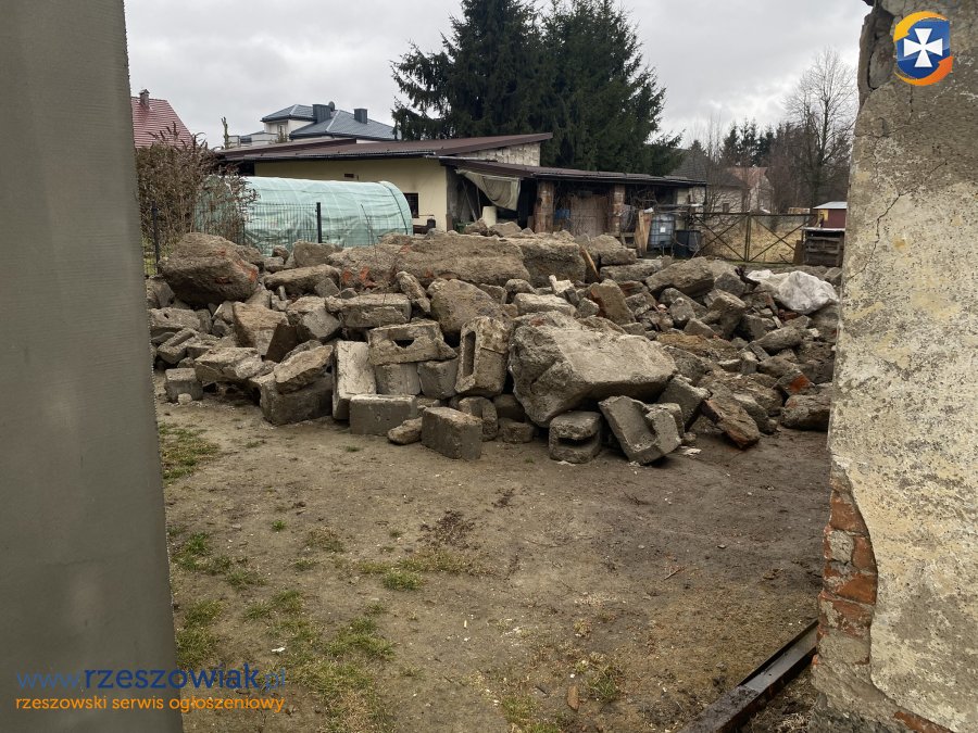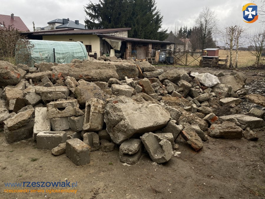 Część gruzu to bloczki betonowe i dachówki, trochę cegły.
