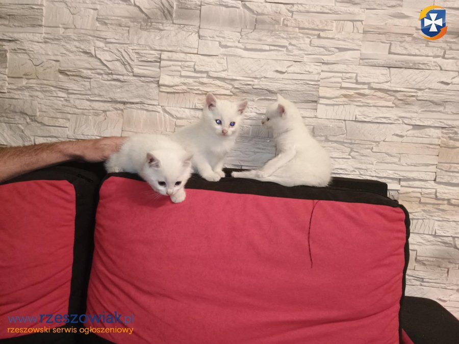 Oddam kotki-całe białe,urodzone 20sierpnia,jedzą wszystko,są oswojone, chętnie się bawią. Oddaję za karmę dla ich mamy.