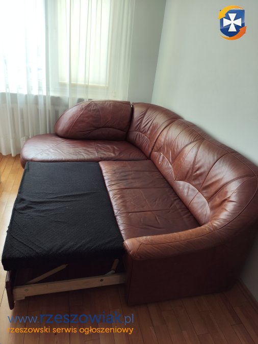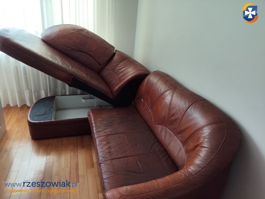 ODDAM NAROŻNIK UŻYWANY ZA DARMO. BRĄZOWY, SKÓRZANY, ROZKŁADANY DO SPANIA Z POJEMNIKIEM NA POŚCIEL. WIDAĆ ŚLADY UŻYTKOWANIA - PATRZ ZDJĘCIA. SAMODZIELNY ODBIÓR I ZNIESIENIE Z 4 PIĘTRA BLOKU.