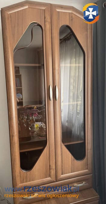 Oddam za darmo. Barek ze szklaną witryną ciemny brąz. W środku cztery półki plus wysuwana szuflada. Wysokość barku 175cm, głębokość 36cm, szerokość 80cm. Barek w stanie dobrym, zadbany. Widoczny defekt odklejona listwa(patrz foto).