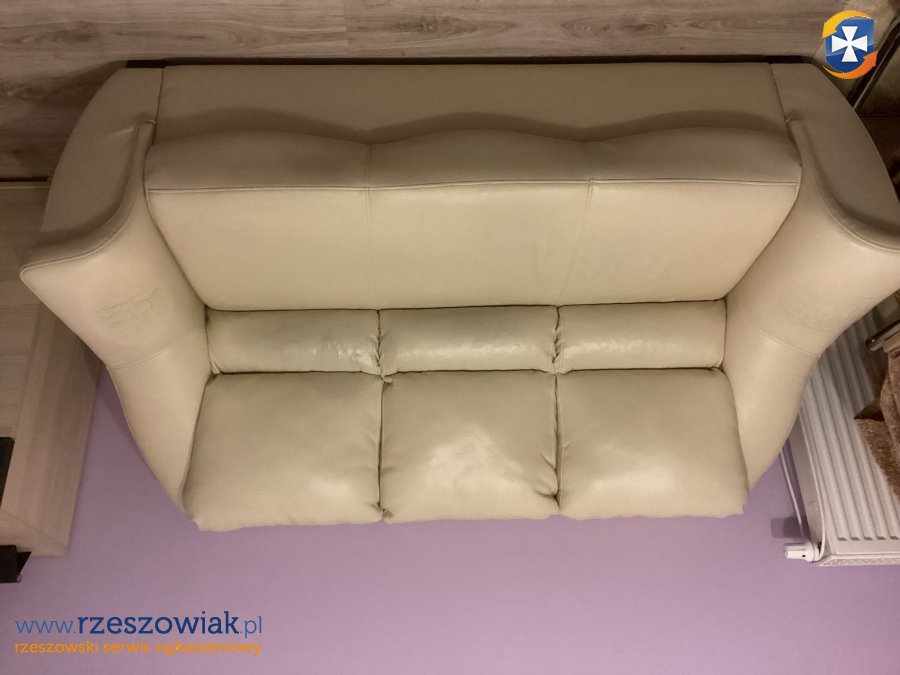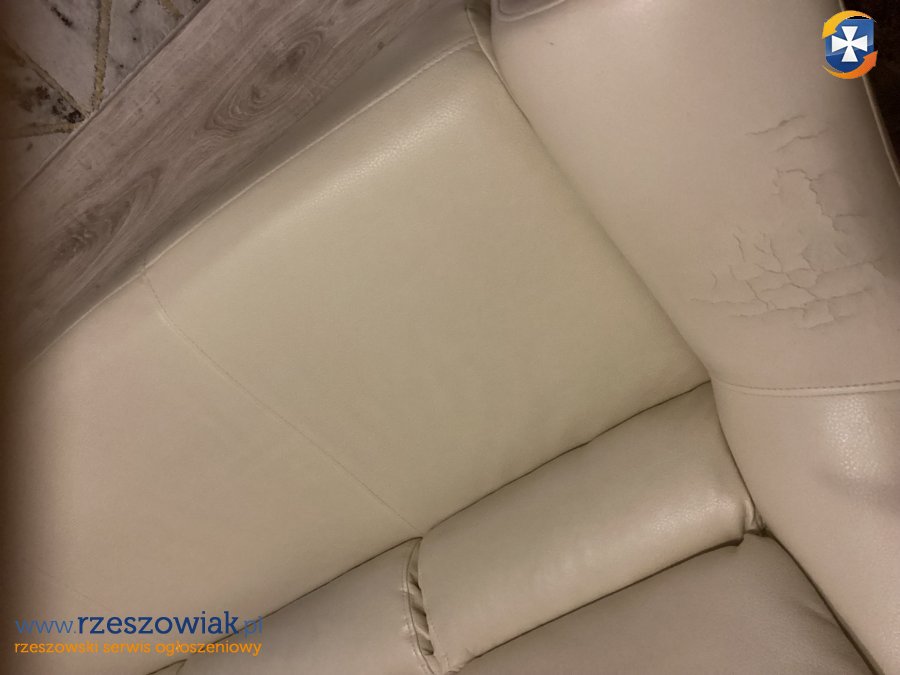 Oddam za darmo sofę z ekoskóry w kolorze kremowym w dobrym stanie. Drobne pęknięcia widoczne na zdjęciach, Szerokość mebla to 180 cm. Sprawdzi się w mieszkaniu studenckim lub na działce. Odbiór w Rzeszowie ul. Architektów - własnym transportem.