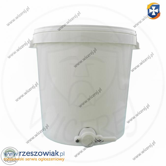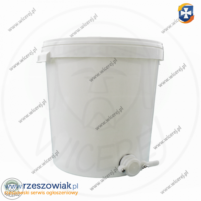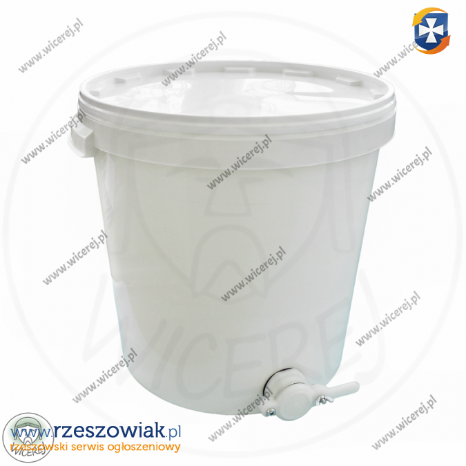 Posiadamy w ofercie nowy odstojnik do miodu 33L plastikowy z pokrywą i zaworem plastikowym (Pojemność 33L to maksymalna pojemność wsadu pod pokrywę) (średnica zaworu fi 48mm).