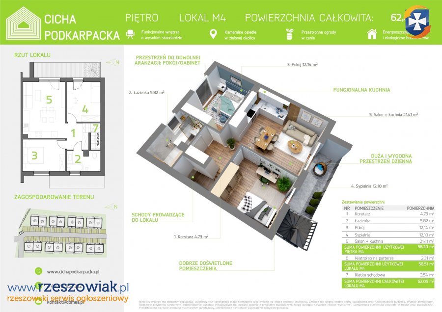 W ofercie mieszkanie 62,05 m2- z tarasem na dachu i miejscem postojowym W CENIE !!