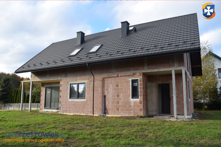 Dom posiada wykonane wstępne wylewki, wewnętrzne tynki cementowe, strop betonowy (ocieplony styropianem), dach pokryty blacho-dachówką, 5 okien dachowych. Wyjście na wszechstronny taras oraz balkon. Działka posiada wykonaną instalację przeciwdeszczową.