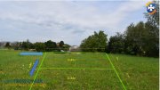 Działki w kształcie prostokąta o szerokości 26.4m i długości 43.2m, położone w drugiej linii zabudowy na płaskim terenie o lekkim wzniesieniu, blisko zabudowań mieszkalnych.