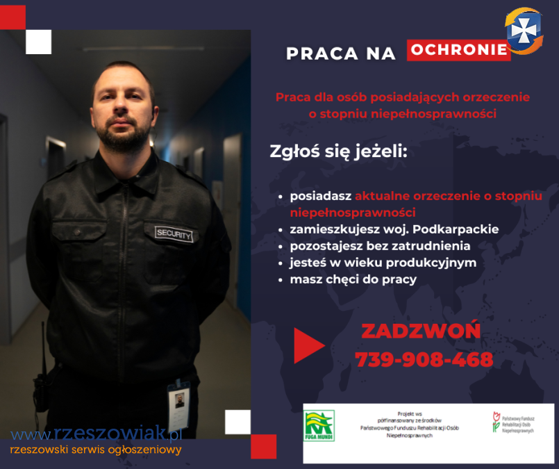 Oferta realizowana jest w ramach projektu "Profesjonalni w pracy" współfinansowanego ze środków Państwowego Funduszu Rehabilitacji Osób Niepełnosprawnych, wymagane jest posiadanie orzeczenia o niepełnosprawności oraz pozostawanie bez zatrudnienia.