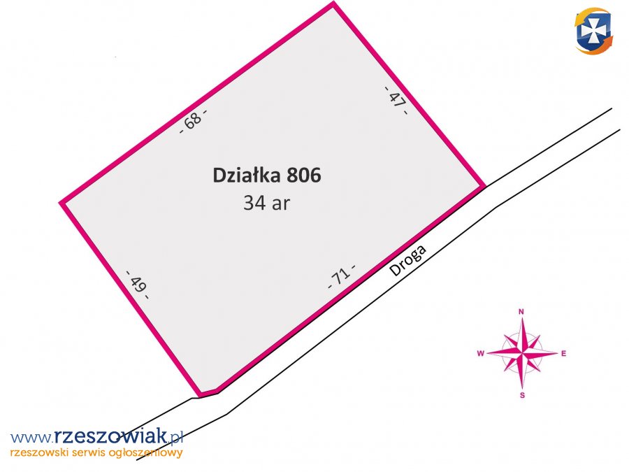 Oferta sprzedaży działki o nr ewidencyjnym 806 w miejscowości Lubenia, woj. podkarpackie, położona 18 km od Rzeszowa z dogodnym dojazdem do miasta.