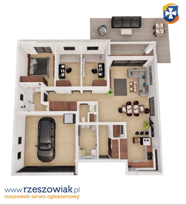 - Komfortowy, nowoczesny układ pomieszczeń: wyraźny podział na strefę dzienną i prywatną