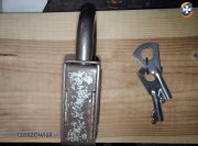 Oferuję do sprzedania solidną kłódkę z okresu PRL z dwoma kluczykami. Sygnowana STAL oraz logo firmy. Przedmiot nie był odnawiany i może być ciekawym dodatkiem np starych drzwi. Wymiary:10,5x7x2,5 cm. Zapraszam. Tel. 609224351