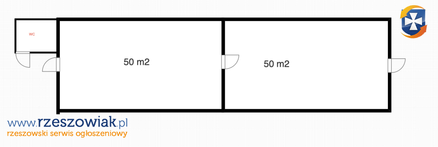 Dwa pomieszczenia po 50m2, wysokość 3,5 metra. Drzwi 100 cm umożliwiające wjazd paletą.