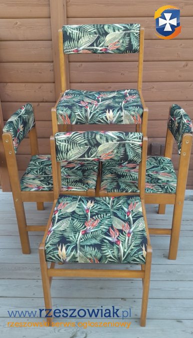 Oferuję świeżo odnowione krzesła z dużymi wygodnymi siedziskami.