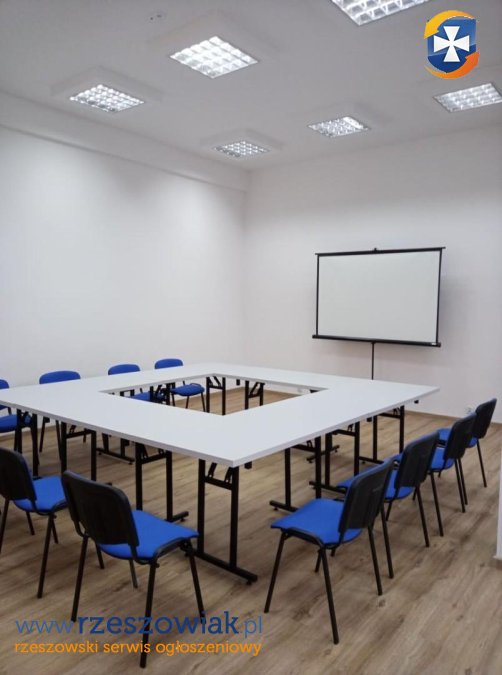 Sala idealnie nadaje się do prowadzenia zajęć, korepetycji, prezentacji firmowych, konferencji, spotkań biznesowych lub przyjęć okolicznościowych (chrzciny, imieniny itp.) dla niewielkich grup do 24 osób.