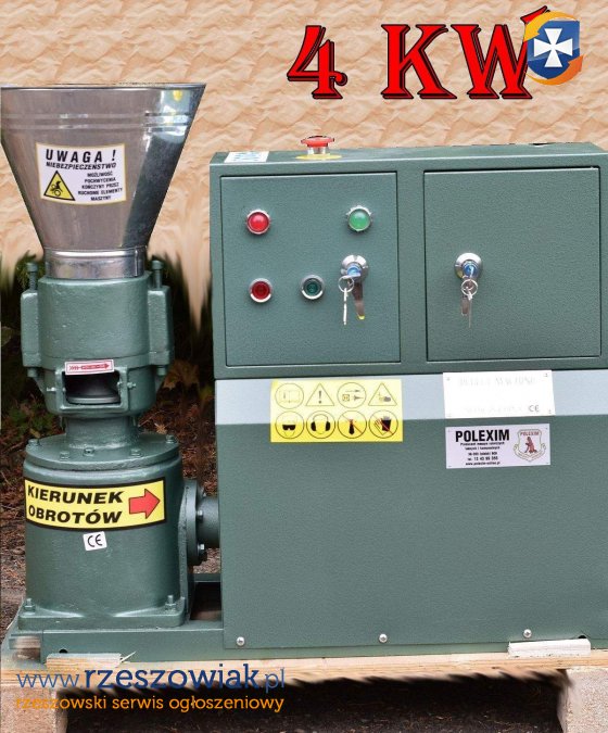 Oferujemy fabrycznie nowe prasy granulujące (pelleciarki), zasilane silnikiem elektrycznym 4 kW.