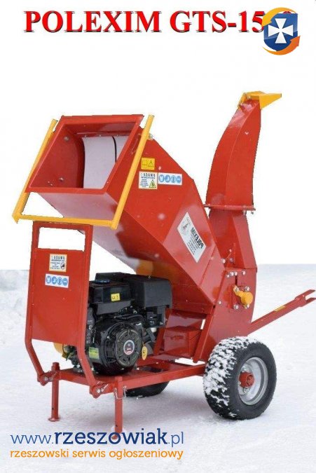 Oferujemy rębaki do gałęzi Polexim GTS-1500E napędzane silnikiem spalinowym benzynowym o mocy 15KM.