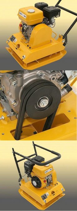 Urządzenia posiadają wzmocniony - jednolity wibrator przykręcany do płyty roboczej oraz napęd z silnika o mocy 6.5 KM.