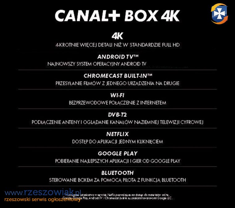 * premiery Canal+ i Netflix i inne (2 miesiące Canal+ ZA DARMO zgodnie z promocją);
