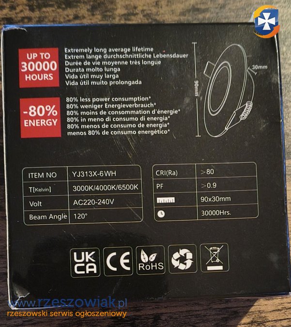 Okrągły panel sufitowy wbudowany Yindalu 3 CCT o średnicy 130 mm. Posiada szybkie połączenie, kąt wiązki 120°, wysokość 30 mm oraz powłokę przeciwodblaskową. Nie używana