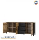 Komoda z kolekcji OLIN to eleganckie i praktyczne rozwiązanie. Za pełnymi drzwiczkami znajdują się wnęki do przechowywania dowolnych rzeczy czy szkła. Trzy szuflady , będą idealne do przechowywania,obrusów, czy innych drobiazgów.