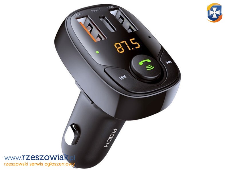 Oryginalna ładowarka samochodowa firmy Rock wyposażona w transmiter FM to produkt najwyższej jakości, zapewniający szybkie i bezpieczne ładowanie nawet trzech urządzeń jednocześnie, 2 porty USB-A, z których jeden obsługuje QC 4.0 oraz port USB-C z możliwością ładowania w technologii PD o mocy 3A.