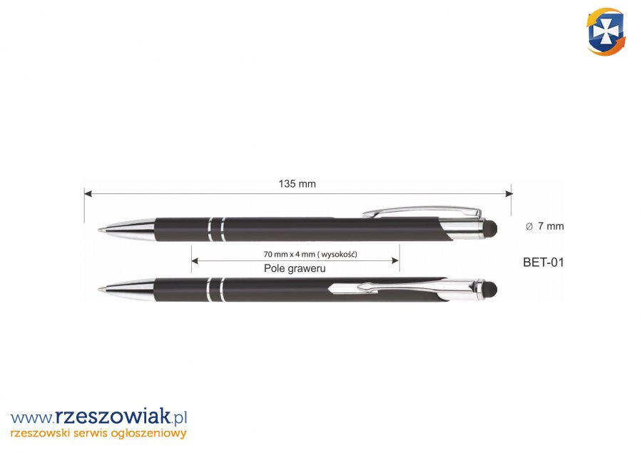 Długopisy metalowe Bello Touch Pen z gumką do ekranów dotykowych z jednostronnym grawerem.