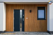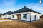 Technologia: Dom budowany metodą tradycyjną. Fundamenty żelbetowe,zaizolowane i docieplone styrodurem. Ściany nośne jak i działowe z betonu komórkowego Solbet, kominy systemowe renomowanej marki niemieckiej Schiedel, strop żelbetowy, trzy szybowe, sześciokomorowe okna w kolorze zewn. antracytowym , dach pokryty blachodachówką w kolorze antracyt z 35 letnią gwarancją producenta oraz drzwi zewnętrzne antywłamaniowe renomowanej marki MARTOM. Dom o bardzo dobrym współczynniku termicznym spełniający parametry domu energooszczędnego cechujący się niskim zapotrzebowaniem energii do ogrzewania. Ściany docieplone styropianem o wysokich parametrach termicznych grubości 20 cm. Biały tynk dobrze komponujący się z szarymi fragmentami i drewnopodobną strukturą lameli z szerokimi i dużymi przeszkleniami uatrakcyjniają bryłę, zapewniając większą przestronność i nadając nowoczesny wygląd domu.Tynk silikonowy cienkowarstwowy baranek KNAUF, efekt lameli elewacyjnych. Wykonany zostanie podjazd a odbojówka i taras zostanie wyłożony kostką brukową. Wykonane zostaną przyłącza prądu oraz wod-kan z sieci miejskiej. Jako alternatywne źródło ciepła przygotowano w salonie otwór kominowy pod kominek.
