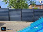 Oval - Model wykonany z profili aluminiowych montowanych poziomo. Bardzo popularny model z panelami ułożonymi w kształcie żaluzji o przekroju owalnym.