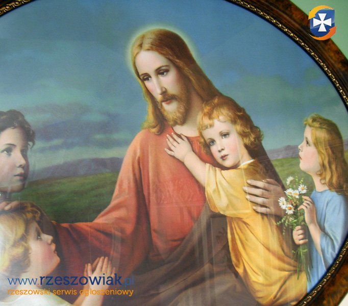 Obraz w owalnej ramie za szkłem Jezus z dziećmi