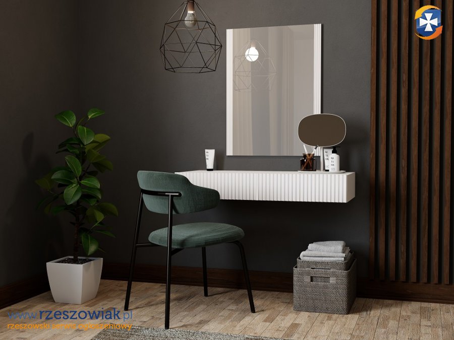 Nowoczesny toaletka z frezowaniami pionowymi, elegancka wpasuje się do każdego nowoczesnego wnętrza.