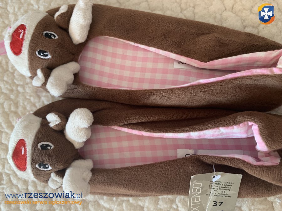 Pantofle z reniferkiem nowe 21 zł Pantofle dzianina z pomponem nowe 18 zł Kożuch damski 280 zł