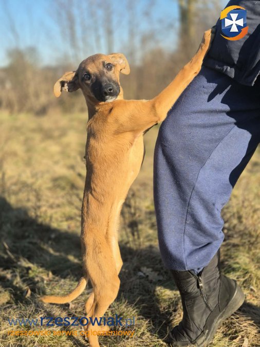 Ma 5 miesięcy, sięga pod kolano, waży ok. 5-6 kg, ma figurę sarenki.