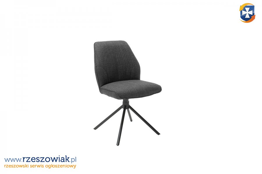 Krzesło nogi skośne metal, lakier czarny, obrotowe 180° z automatycznym mechanizmem powrotnym.