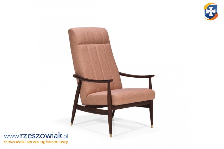 PERLA Fotel - lekki fotel na wysokich nóżkach, z drewnianymi bokami