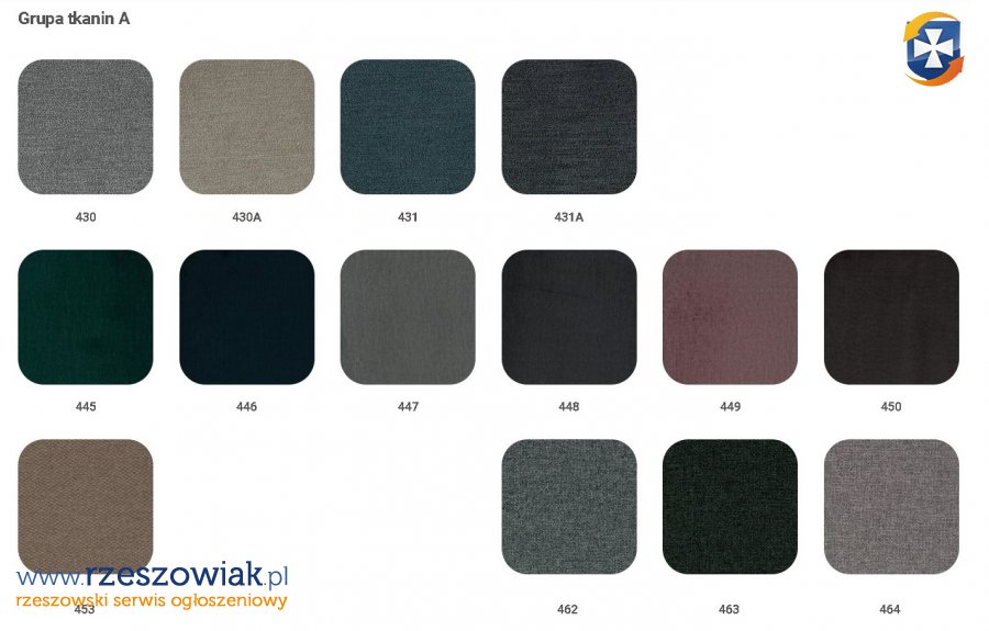 Szeroka gama tkanin pozwala na swobodny dobór koloru i faktury obicia z możliwością łączenia różnych tkanin.