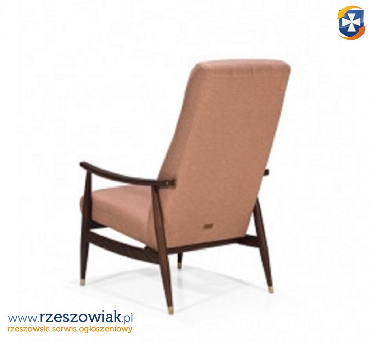 PERLA Fotel - lekki fotel na wysokich nóżkach, z drewnianymi bokami