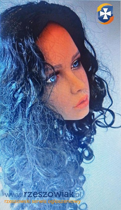 Peruka syntetyczna o czarnych kręconych włosach. Tylko raz ubrana