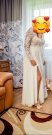 Piękna, lekka I niezwykle elegancka suknia ślubna, z ozdobnym koronkowym rękawem, dekolt w delikatny serek również z tyłu na plecach. Dodatkowo zdobiona z tyłu i na rękawach delikatnymi, perłowymi guziczkami. Dół sukni muślinowy z pęknięciem z jednej strony pięknie eksponuje nogę. Rozmiar sukni L.