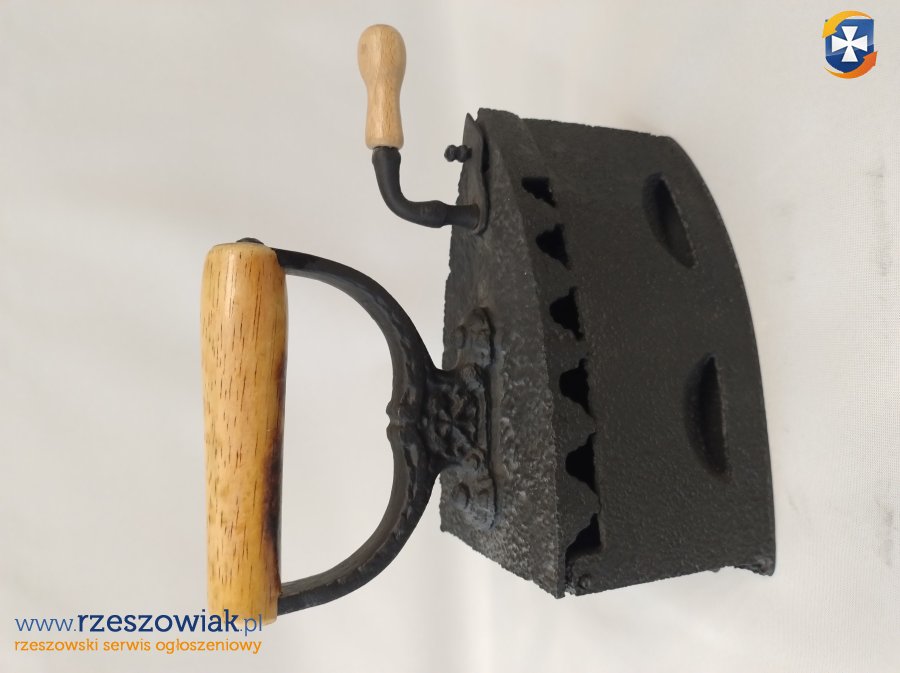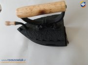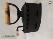 Piękne, stare, metalowe żelazko na węgiel z drewnianą rączką. Stan zachowania jak na swój wiek jest w stanie bardzo dobrym. Brakuje w środku rusztu ale jest to nieistotny detal, który byłby potrzebny w przypadku prasowania.