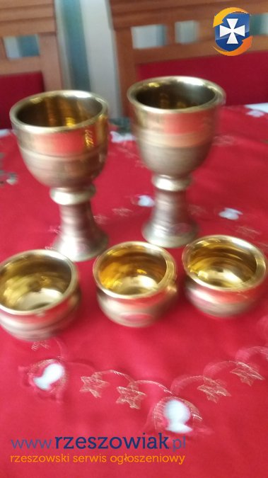 Piekny komplet skladajcy sie z 2 Wiekszychkieleichow i 3 mniejszych pozlacany 18 karat zlotem wewnarzy produkcja Skandynawia odbior osobisty tylko Rzeszow delikatny wybor, wypalany, recznie robiony.