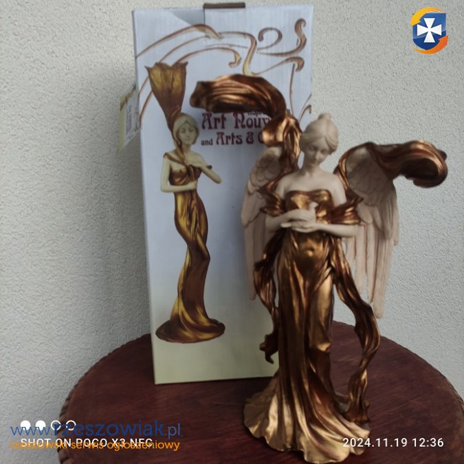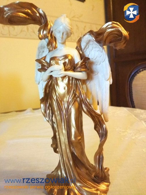 Piękny nowy świecznik Anioł trzymający w ręku gołębia,oryginalne opakowanie.wysokość 29 cm. x 19 rozpiętość.