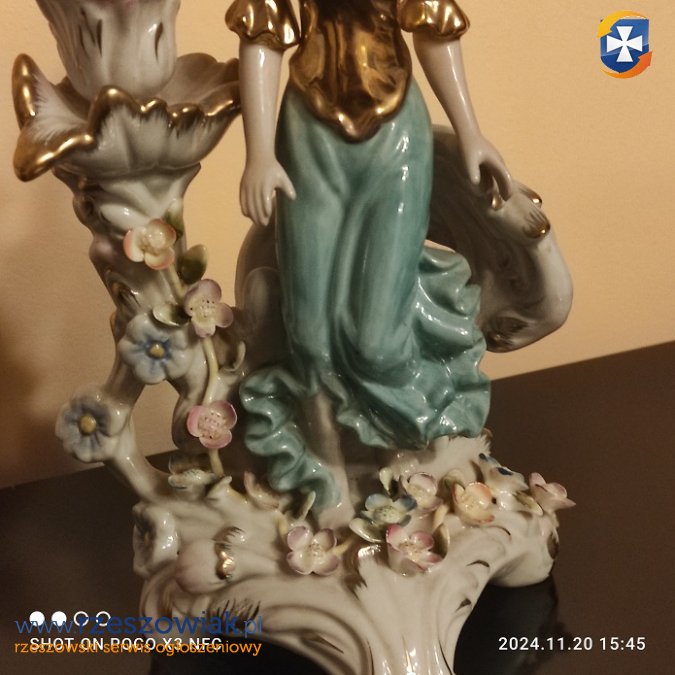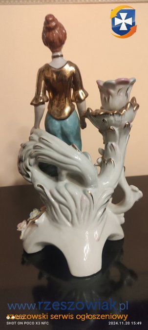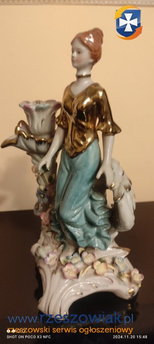 Świecznik z damą porcelana sygnowana