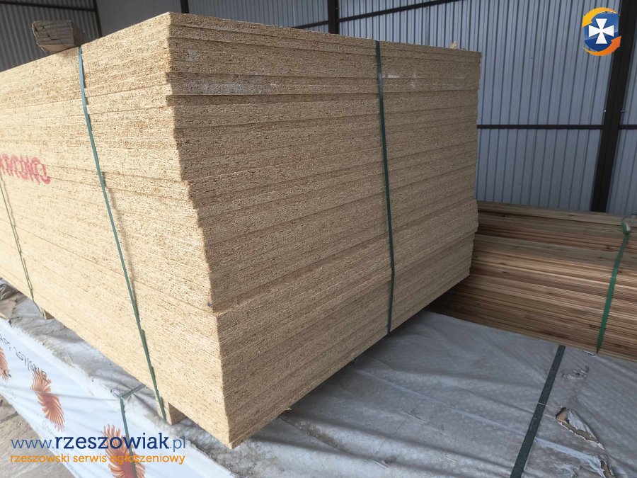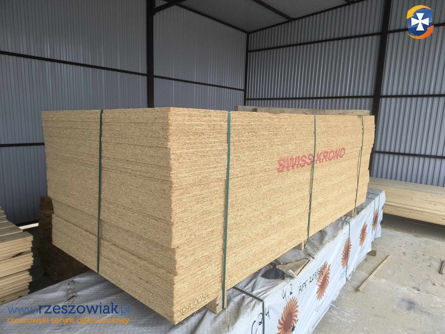 Płyta OSB-3 18 mm marki Swiss Krono z prostymi krawędziami. Konstrukcja płyty doskonale nadaje się do poszyć połaci dachowych, ścian zewnętrznych i wewnętrznych, podłóg, stropów, belek dwuteowych. Płyta Swiss Krono OSB-3 to także rewolucyjny krok w kierunku budownictwa drewnianego. Domy budowane w technologii szkieletowej z wykorzystaniem płyty OSB-3 są: ekologiczne, energooszczędne i szybkie w budowie. Wysokie parametry techniczne płyty Swiss Krono OSB-3 wynikają z zachowania włóknistości drewna, wyrównania wiórów płaskich w warstwach i zazębiania się długich wiórów. Przez natryskiwanie wiórów specjalnym systemem klejowym i emulsją parafinową uzyskuje się dużą odporność płyty na wpływy warunków atmosferycznych. Płyta Swiss Krono OSB-3 jest wolna od garbów, pęknięć oraz innych wad wewnętrznych, a obie powierzchnie wykazują jednakową jakość. Dzięki nowoczesnej technologii płyta osiąga parametry porównywalne ze sklejką, przy tym jest zdecydowanie tańsza. Płyta przenosząca obciążenia do stosowania w środowisku o umiarkowanej wilgotności 1-2 klasa użytkowania zgodnie z norma PN-EN 13986.